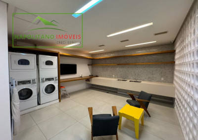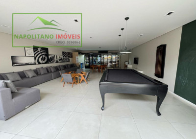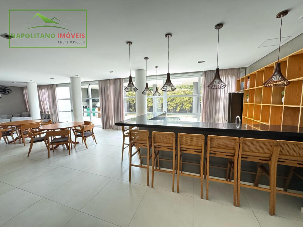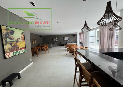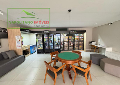 O condomínio é completo, com lazer para todas as idades: salão de festas, sala de ginástica, piscina aquecida, brinquedoteca, salão de jogos, lavanderia coletiva, playground e até mercadinho.