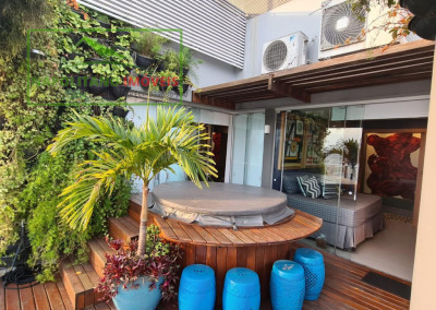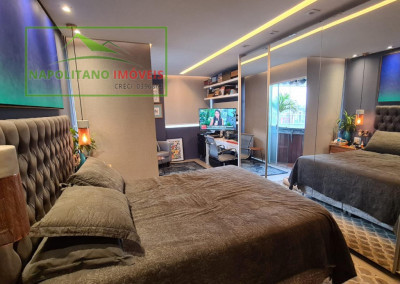 No piso superior, estão as 2 suítes, incluindo a suíte master, com armários embutidos, espaço para escritório e um terraço privativo com jacuzzi, proporcionando momentos únicos de relaxamento com vista privilegiada.